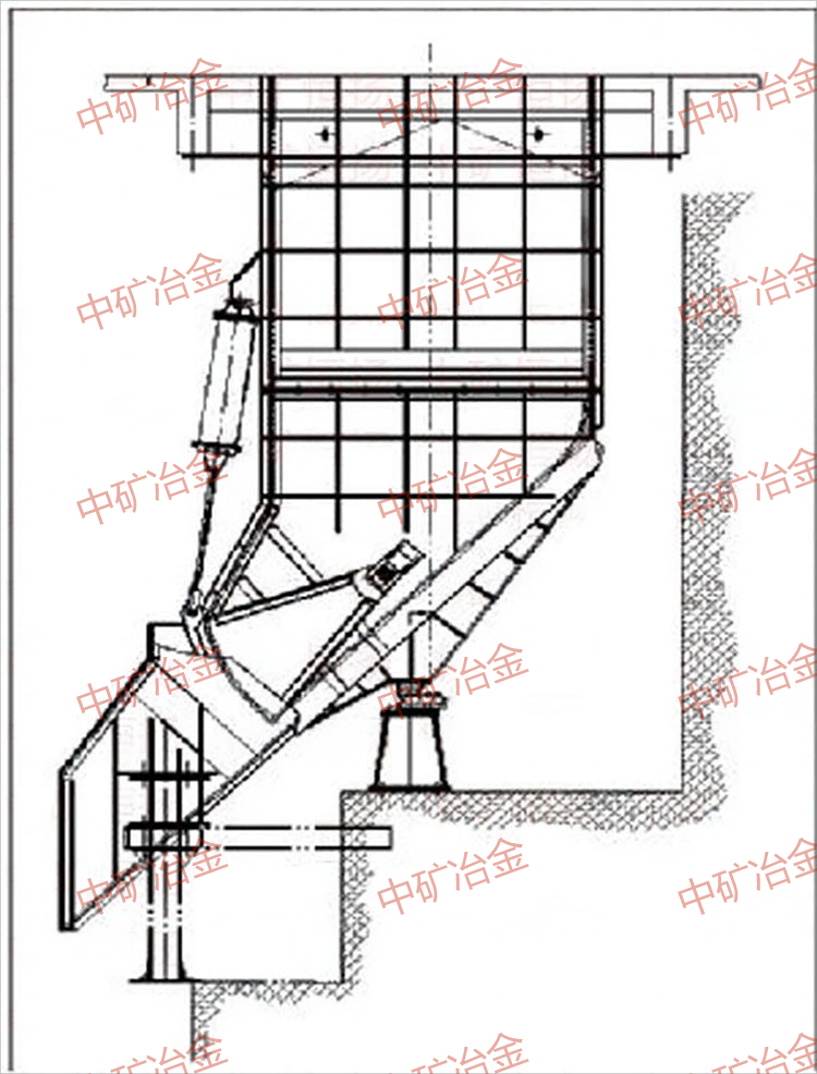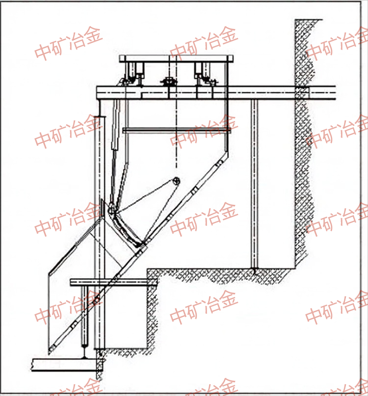 定量斗式主井箕斗定量裝載系統(tǒng)中的定量斗的安裝方式主要有兩種,在噸位小的情況下通常采用底座式安裝(如圖1),定量斗噸位較大的情況下通常懸臂式安裝(如圖2)。